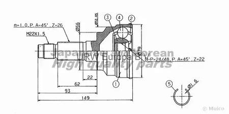 | размер резьбы | M22x1.5 |